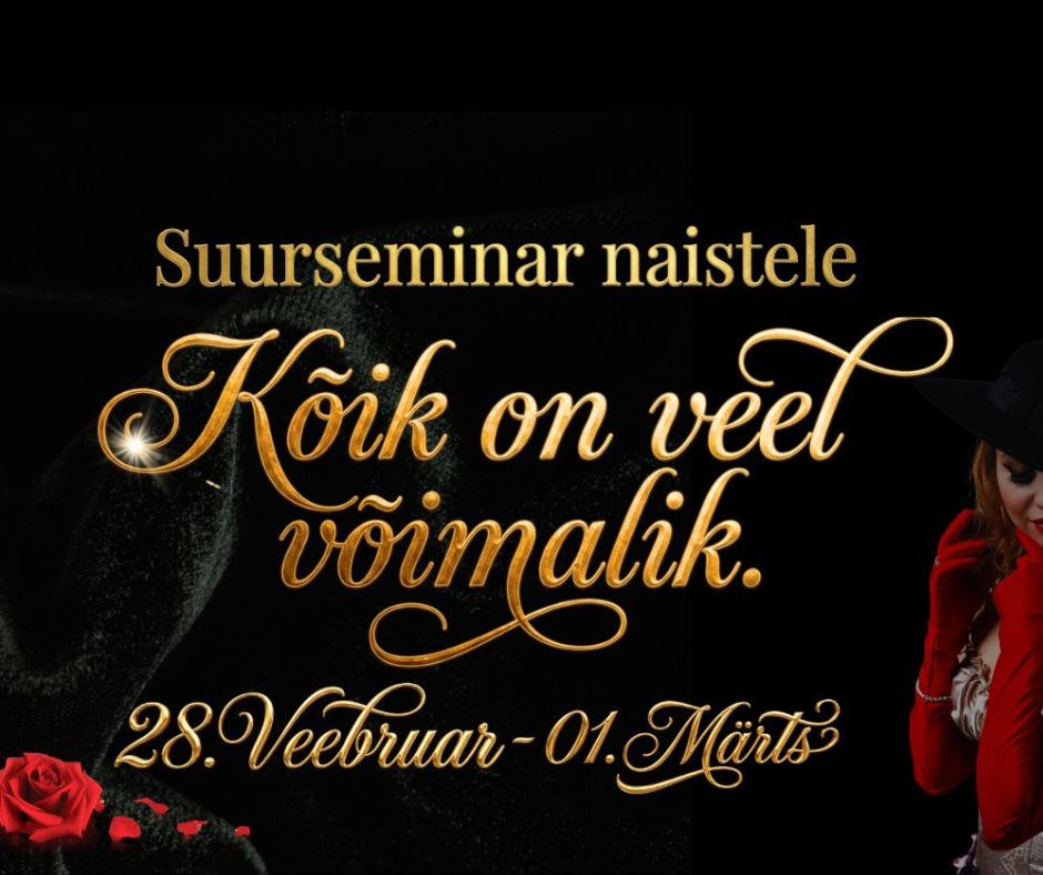 Suurseminar naistele : KÕIK ON VEEL VÕIMALIK, mis toimub 28veebruar – 1. märts Pärnus ( Hestia Hotell Strand) on kahepäevane uskumatult võimas ja muutusi loov üritus, kus luuakse ühine ruum naistele, kes vajavad selgust, toetust ja päris lugusid — mitte teooriat, vaid elu. LOE ROHKEM ÜRITUSEST SIIT.